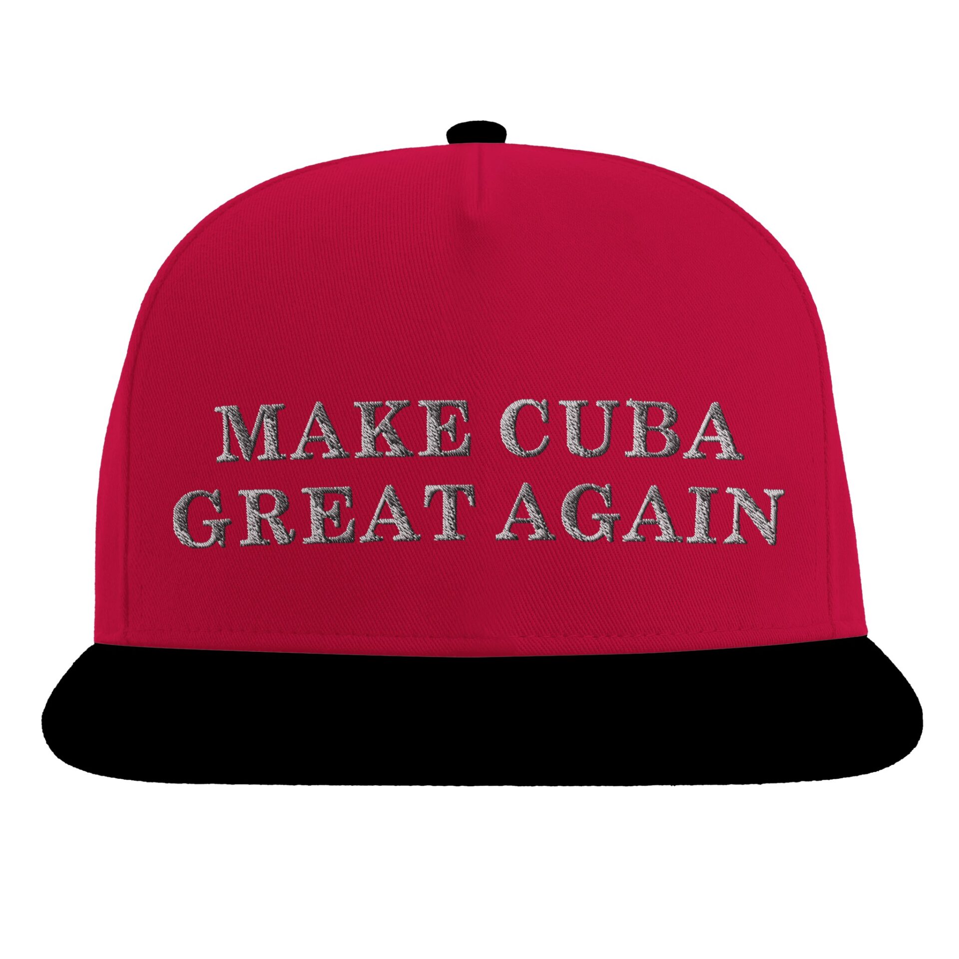 Gorra roja con bordado de hilo blanco: “MAKE CUBA GREAT AGAIN” (Gorra Snapback)
